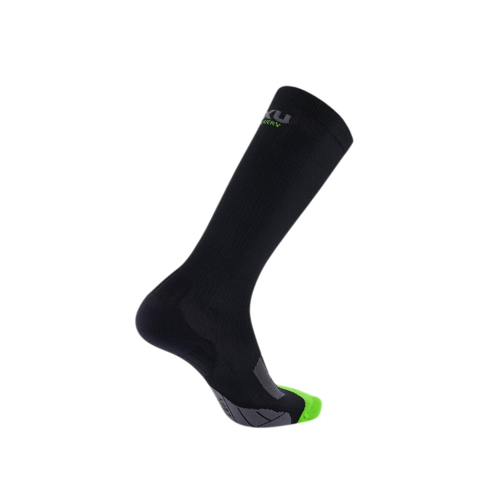 Designed to alleviate tired muscles from extended hours on your feet, the Recovery FIR Compression Socks leverage a built-in, naturally occurring mineral additive that converts the human body's thermo-energy into Far Infrared Rays (FIR), reflecting it back to the skin tissues allowing it to gently energize cells and enhance muscle elasticity.