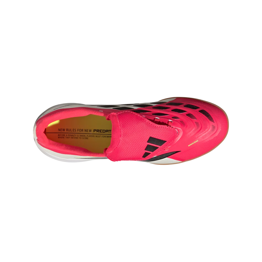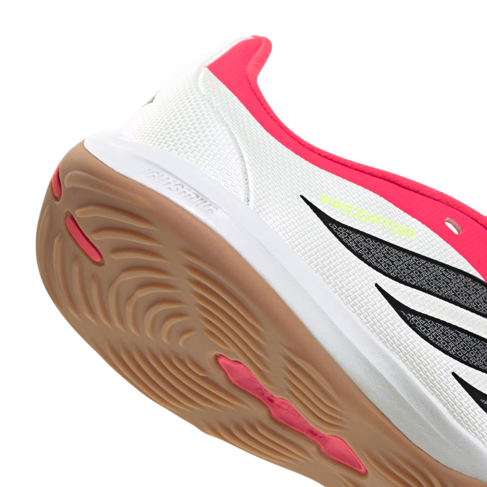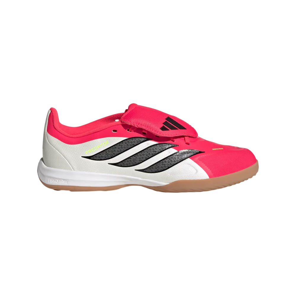 Meet the Predator League Fold-Over Tongue Indoor Football Shoes. Designed for young athletes, the fold-over tongue design adds a classic touch while providing a snug fit for those energetic play sessions. These shoes feature our Nanostrike technology. Reimagined synergy between fit and grip tech. Mesh upper built for extra softness and lightness, with an integrated haptic overlay for enhanced striking precision. The Powerspine technology is an iconic predator tech, integrated into a new high-performance tooling for midfoot stability and stronger shots. The rubber outsole offers reliable grip on various surfaces, making them suitable for school sports and weekend matches. With a blend of heritage and innovation, this adidas pair encourages kids to unlock their potential on the pitch. Let your child experience the thrill of football with shoes that are as dynamic as their game.