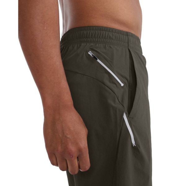 Elastic waistband with internal drawcord provides a secure fit during high-paced activity whilst a sphere back texture on the woven fabric prevents cling