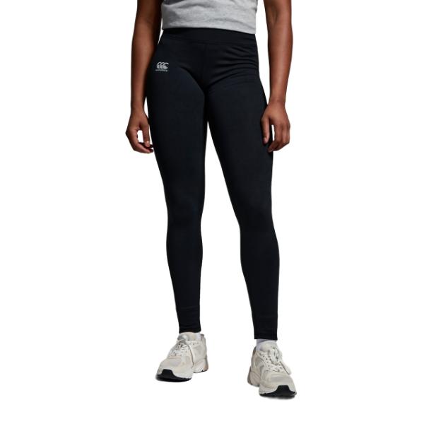 Train without limits in these women's full-length tights. Made with VapoDri technology they will keep you cool and dry by wicking away sweat from your skin with quick-drying fabric meaning you can wash them today and wear them tomorrow, perfect for busy schedules. An athletic fit allows the tights to move with you, without becoming thin when the material is stretched so you'll have no distractions as you train. A triangle-shaped gusset allows you to stretch and move with confidence and a secure pocket lets you store small items safely. These tights are finished with an embroidered Canterbury logo - the mark of a true rugby fan!