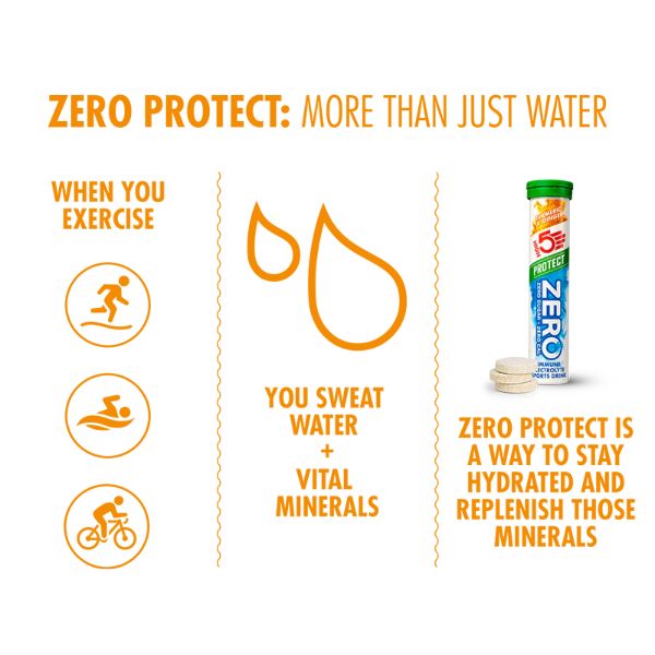 ZERO Protect is an advanced ZERO tablet which not only hydrates you, but also maintains your immune system during and after intense exercise¹. You can use this great tasting zero calorie immune electrolyte drink during exercise and throughout the day to rehydrate with vitamins, plant extracts and key electrolytes, including sodium and potassium.