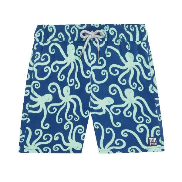 TOM & TEDDY - Boy's Shorts (Navy & Mint Octopus)