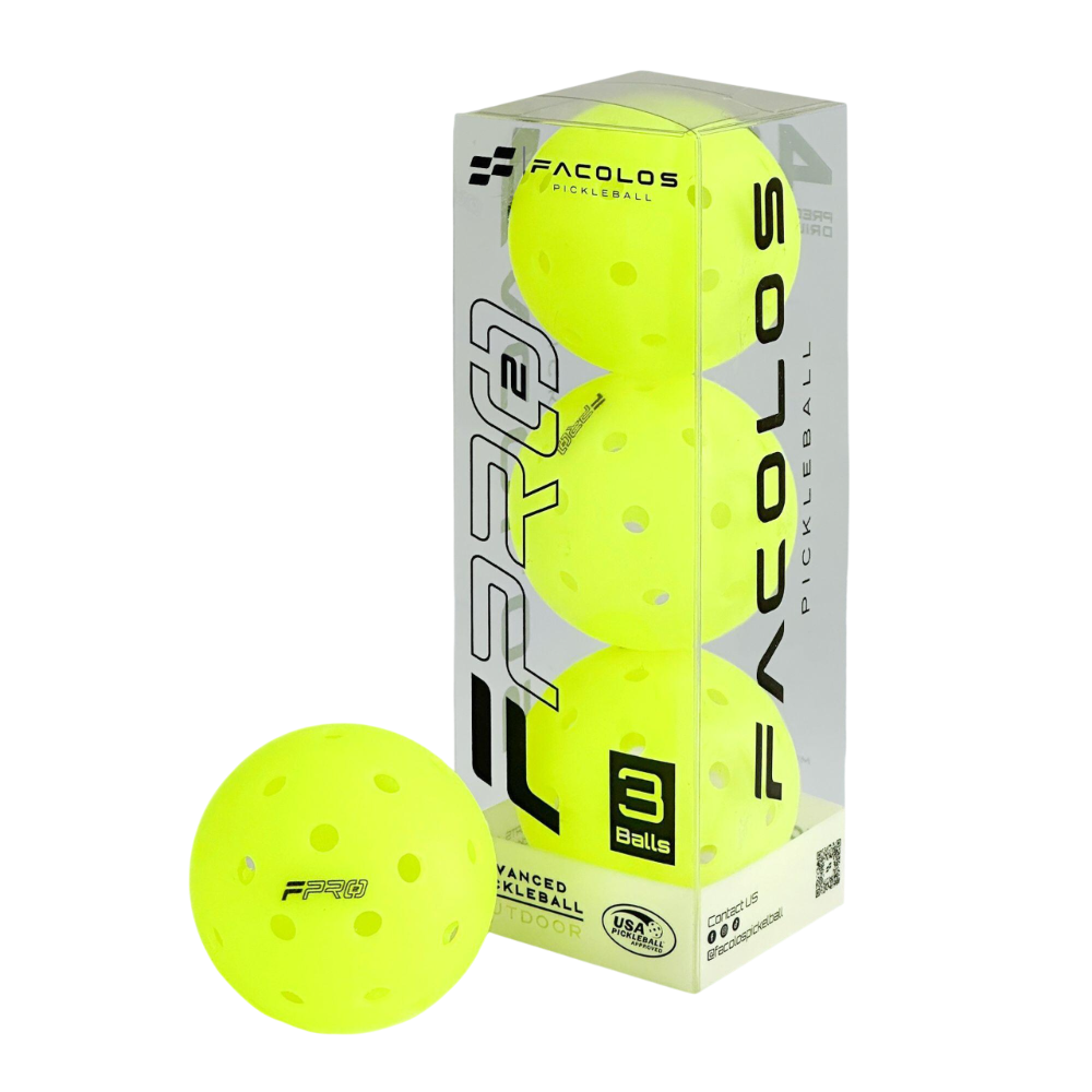 The Facolos F-Pro Advanced Pickleball meets USAPA standards with a 74mm diameter and a molded Facolos logo.