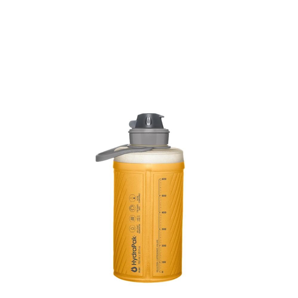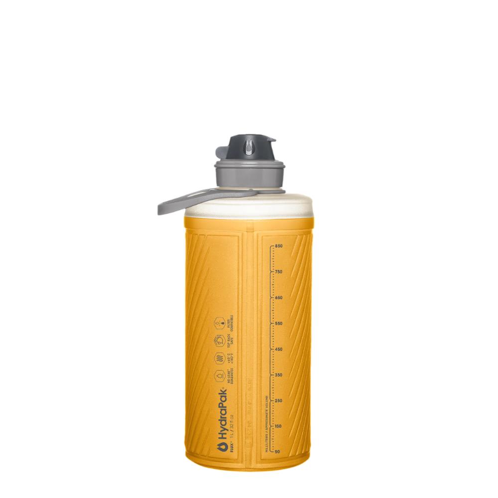 Flexible bottles get an upgrade. The Flux is shaped like a hard bottle, compresses like a soft flask, and cuts weight by 50%. Topped with a dust cover and twist-drink nozzle for grab-and-go hydration, plus a bail handle to keep hydration secure in your hand or on your pack. The Flux stands upright like a hard bottle but when you finish your drink, this bottle packs down to pocket size.