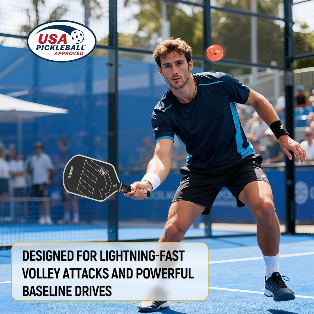 Our 16mm carbonized foam core combines lightning response with superior control. Premium T700 12K carbon fiber generates exceptional spin, while the elongated 5.75" grip accommodates any backhand style. Fully approved for USAP PBCoR 0.43 standards.