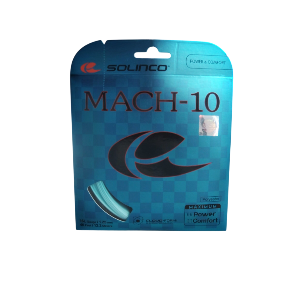 Mach-10 is Solinco’s newest co-polyester string, engineered for explosive power, superior feel, and long-lasting playability. At its core is the CloudFORM technology—an innovative chemical formulation that gives Mach-10 its best-in-class power, comfort, and tension maintenance.