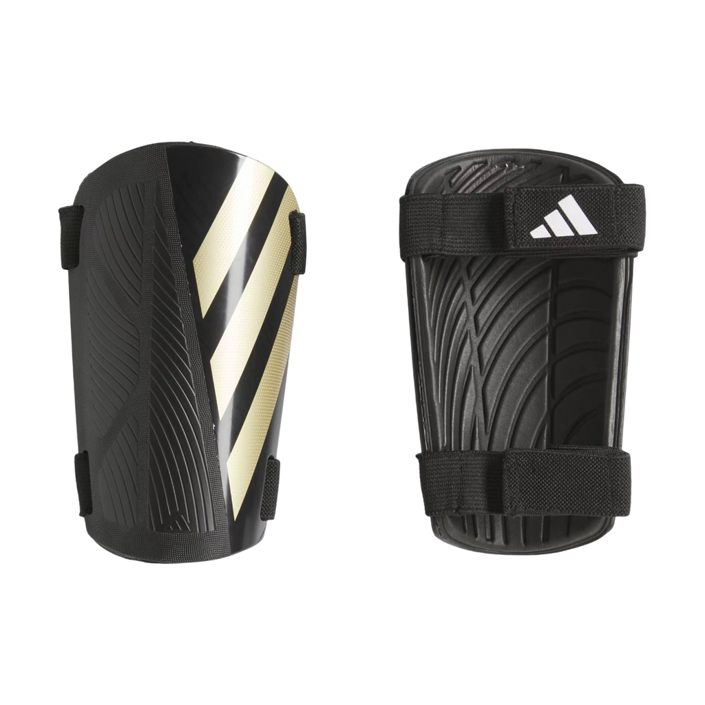 Gear up for intense action with these Adidas Tiro Training shin guards. Built to withstand the rigors of competition, their hard shields are held in place by two hook-and-loop straps. On the reverse, EVA cushioning absorbs impacts and keeps you comfortable on the move.