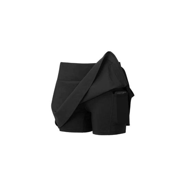 There is more than meets the eye to this beautiful running skirt with under-short. Designed with the same premise as our popular twin shorts this Skort allows for even more freedom of movement with every stride. The pleated skirt covers a next-to-skin supportive inner short that results in a relaxed-looking running product with the performance desired from an elastane short. What's more is that two pockets, one zipped on the outer skirt, and one thigh pocket on the inner short allow you to keep all your items secure on your run.