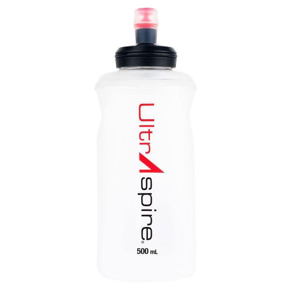 This collapsible SoftFlask carries 500mL of fluid. The unique shape allows this SoftFlask to slide easily in and out of a hydration pocket. Comes with a larger diameter top to fit ice cubes and keep fluids cool. Perfect to combine with the 300mL SoftFlask to carry more fluid or electrolytes if needed. Features a silicone Sheath Bite Valve.