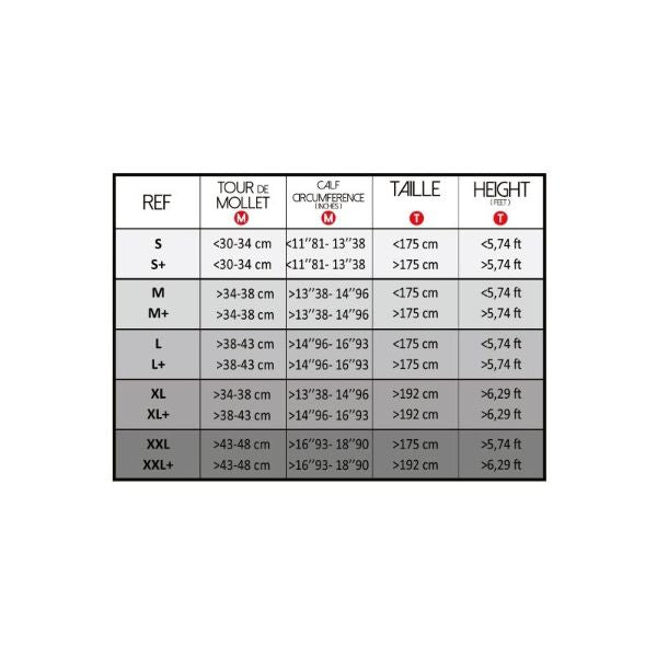 The new compression calf sleeve has been designed using several types of mesh (ultra-flexible/flexible/semi-rigid/rigid) to exert specific pressure on the calf, shin and ankle.