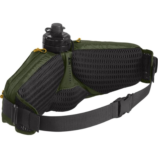 We've done it again, maximum features with minimal weight. Air Support™ Back Panel with Body Mapping Technology will help you keep cool. Your water bottle is centered in the middle of the belt for easy access with either arm. Need a new water bottle? We've got you: Podium Dirt Series 21 oz Water Bottle is included. Reflective features help you be seen on and off the trail. Repurpose Gold Sustainability Badge: Made with recycled materials, made with safer chemicals, and designed to preserve resources and diminish disposables. Minimalism to the max!