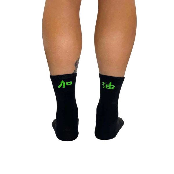 Ga Yau Socks: "Ga Yau" or 加油 is a common expression in Hong Kong. It means "add oil" but is typically used by runners to say "keep going" or "you can do it".