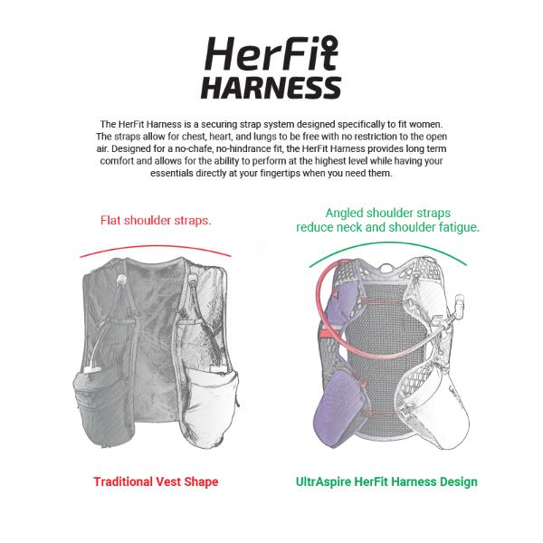 The Astral 5.0 is a 9-liter pack and the newest iteration of our women’s specific race vest that features the patented HerFit Harness. The HerFit Harness is a securing strap system designed specifically to fit women. The straps allow for the chest, heart, and lungs to be free with no restriction to the open air. The front harness of the Astral 5.0 has been updated to allow capacity for a variety of hydration options. This pack utilizes our UltrAcool Light Mesh which provides a very breathable and lightweight feel and increases pack durability. It is lined with a soft-perimeter binding to ensure any contact with the body is comfortable over the long haul. The shoulder pocket on the Astral 5.0 is large enough to carry any size of cell phone comfortably. For storage, the Astral 5.0 is equipped with 8 pockets allowing the ability to customize your gear needs to your race or adventure. For an even better fit, the Astral 5.0 uses our MaxO2 System side compression adjustment which helps stabilize the pack empty or fully loaded and provides a more fitted feel with less heat retention. The main compartment of this vest features an expandable mesh to store larger items and can be secured down with string compression keeping the pack stable. 2 2-liter reservoir is included.