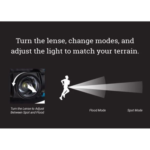 PerfectAngle™: Easily adjust up, straight, or down to suit your terrain. Illuminate your path while keeping your head and body in a natural running position.