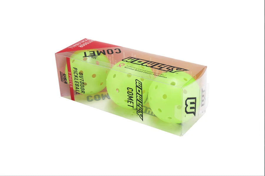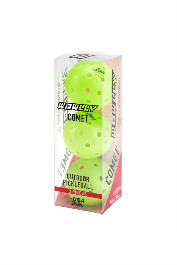 Comet 系列匹克球採用最佳無毒原材料。比舊一代和競爭對手更耐用、更不易開裂。在 (WOWLLY) 對打中感覺更清脆。非常適合錦標賽、比賽和練習。
