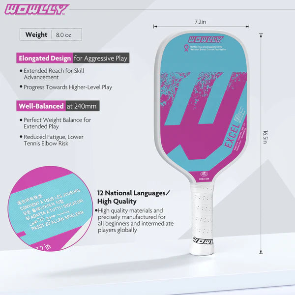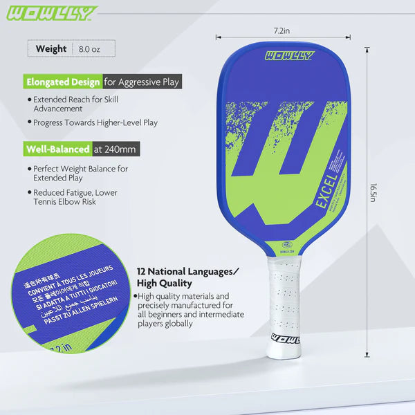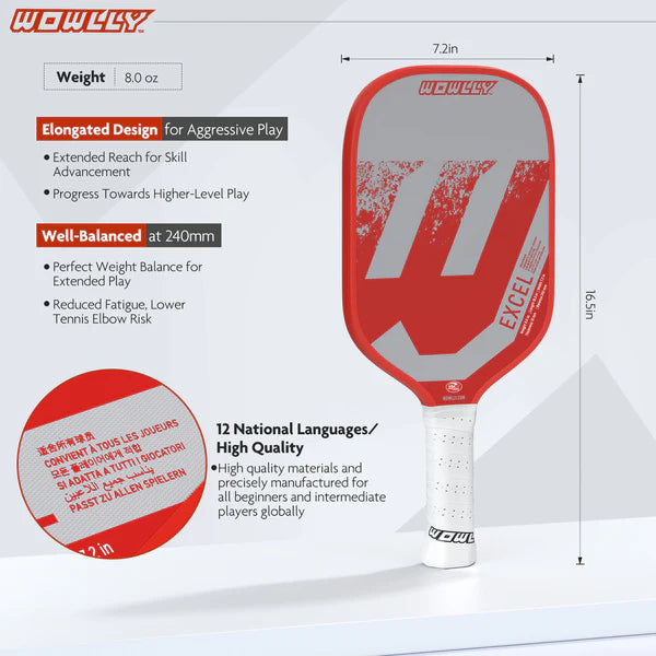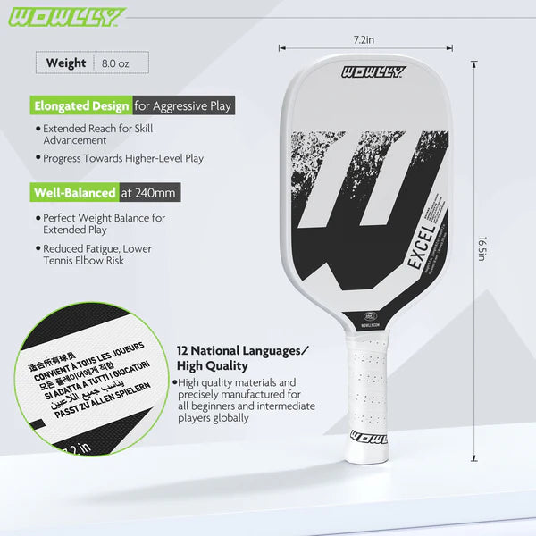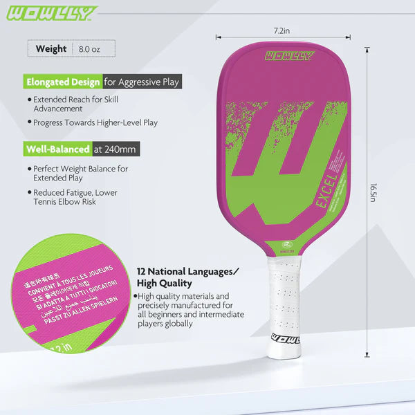 專為初學者至中級選手設計,wowlly EXCEL 系列球拍採用加長設計,提供更廣的觸及範圍和侵略性打法,幫助選手晉升到更高技術水平。