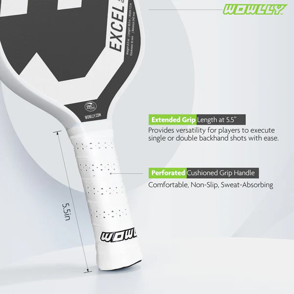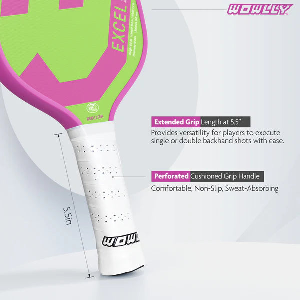 WOWLLY EXCEL 系列匹克球拍擁有 DURATECH GFRP 紋理表面,提供卓越的耐用性、旋轉和力量,確保選手在場上表現出色。