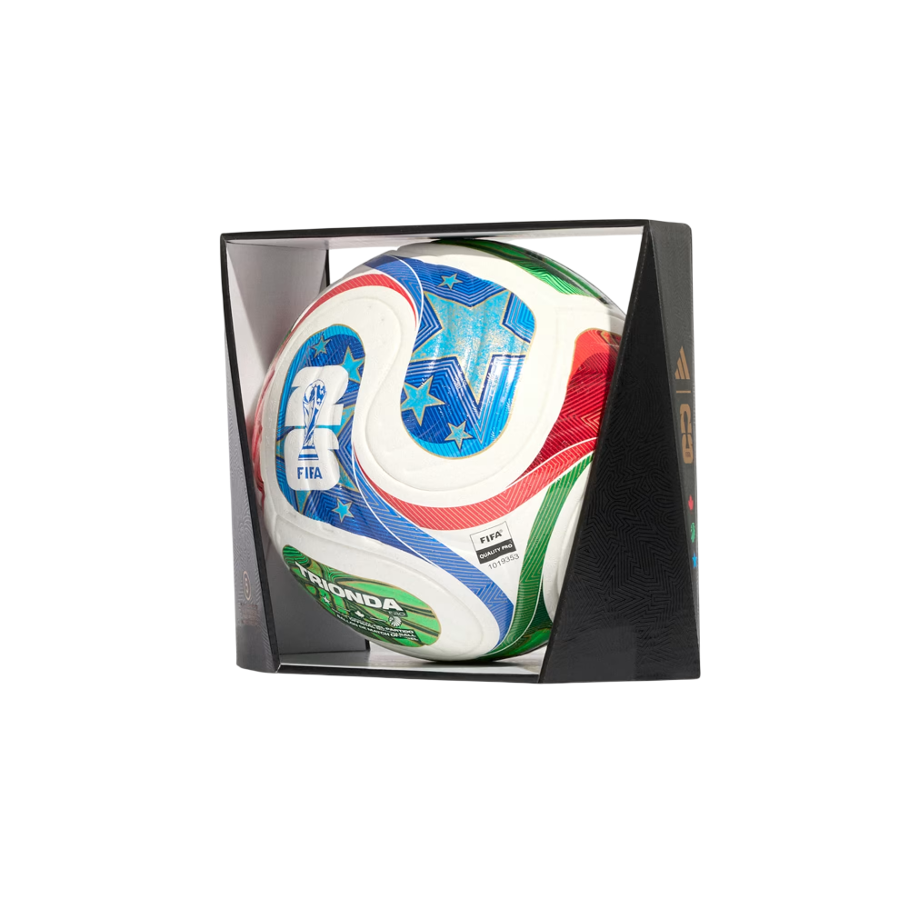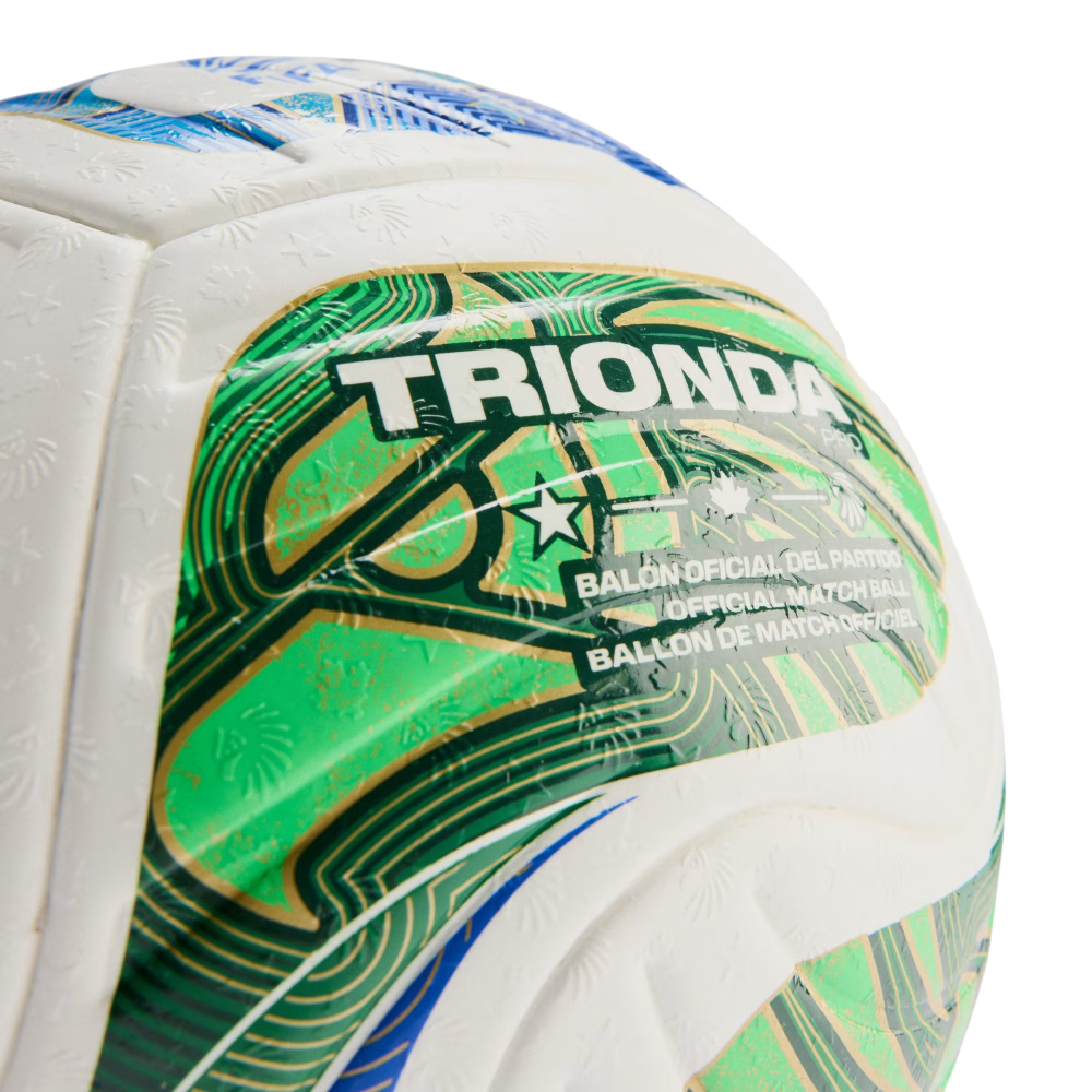 A spectacular sight first seen at sporting venues across the Americas, the iconic "la ola" wave inspires the flowing, four-panel design of this adidas Trionda Pro ball. The official soccer ball of the FIFA World Cup 26™, it has a seamless surface with an eye-catching texture and strategically placed debossing for optimal precision and in-flight stability. Vibrant colors and bold national symbols represent the tournament's three host countries.