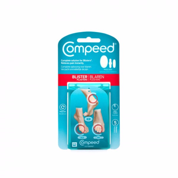 COMPEED® Blister Plaster absorbs moisture and forms a protective cushion, providing instant pain relief and optimum healing conditions for foot blisters