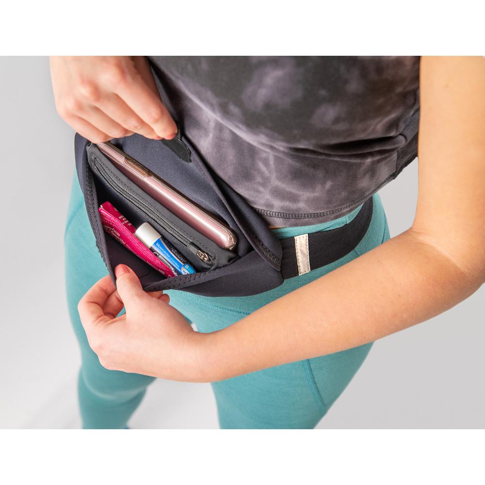 The EZ Access Running Belt makes it easy to remove your phone and put it back inside when wearing without worries of contents spilling out or hassles unpacking, repacking, or struggling with a too-tight zippered opening. It’s bounce-free, super comfortable, and easy to put on without needing to step into a fixed loop or guess your best size. It’s great for running or any activity when quick and easy access to your phone and other essentials is desirable.